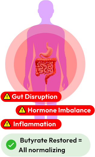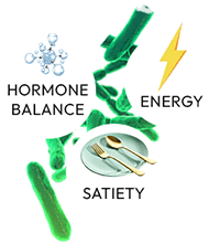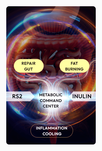 Trimology feeds and brings back those missing microbial strains... using a blend of resistant starch from potato and chicory root... plus our Signal Reset Triad and additional compounds that support your hormones, gut lining, and energy systems.